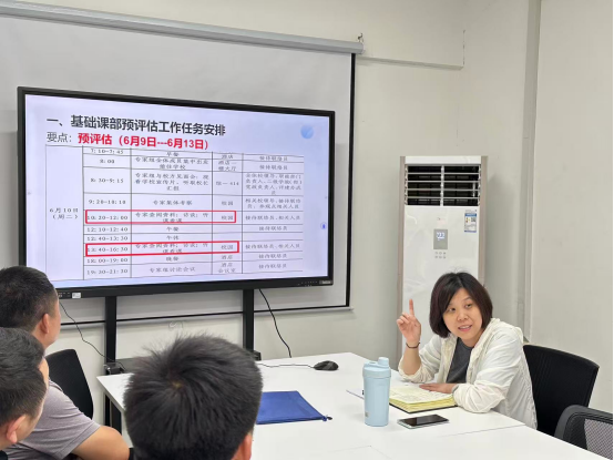 在总结发言中,课部副主任俞霜对迎评工作提出要求:一是全体教职工需齐心协力、高效配合学校完成预评估工作;二是严格遵守工作纪律,加强团队协作与沟通配合,落实全过程考勤管理;三是做好持续改进准备,坚持精益求精,明确分工、责任到人,建立工作台账。