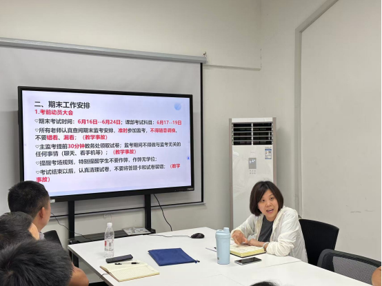 会议同时结合学校本学期期末教学检查安排,开展课部层级考前动员,传达了关于期末考试工作的安排及相关要求,重点强调了期末阅卷、成绩录入、教学档案整理等工作的时间节点调整及规范要求。