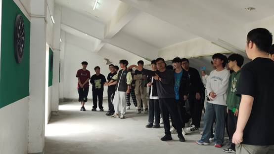 在示范课现场,蔡炎立老师首先向学生们展示了飞镖的基本投掷技巧,包括站姿、握镖方式、瞄准技巧等。随后,蔡老师进行了精彩的飞镖表演,精准地投掷出飞镖,稳稳地扎中靶心,赢得了学生们的阵阵掌声。