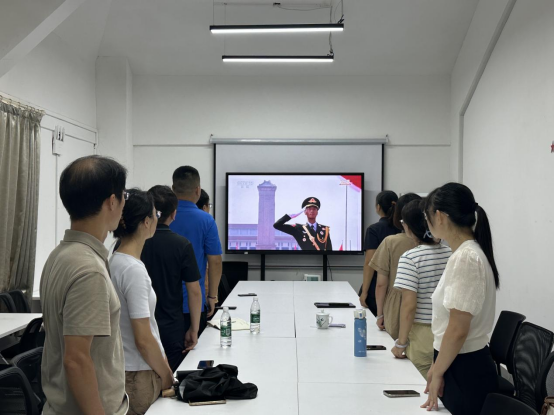 上午9时,党员教职工们准时聚集在会议室,怀着崇敬的心情观看大会直播。大家认真聆听了习近平总书记的重要讲话,共同回顾了中国人民经过长达 14 年艰苦卓绝的浴血奋战,取得抗日战争伟大胜利的光辉历程,深刻领会了抗战胜利的重大历史意义和现实意义。