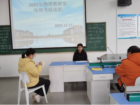 为配合学校完成本年度年终考核工作,物理教研室张勇主任特召开此次会议,会议内容如下:
